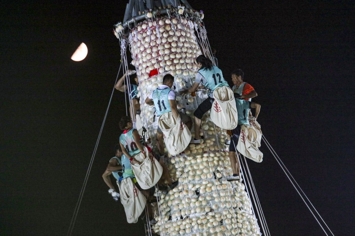 Doce concursantes individuales y diez equipos invitados se enfrentaron a la “Montaña de Bollos”, una torre cónica cubierta por unos 9.000 bollos tradicionales al vapor, conocidos como “bollos de la paz”. La estructura, de más de 14 metros de alto, se erige cada año frente al templo Pak Tai durante el Festival del Buda de Cheung Chau, que conmemora una antigua leyenda según la cual los bollos ahuyentaban a los malos espíritus y traían bendiciones a la comunidad.